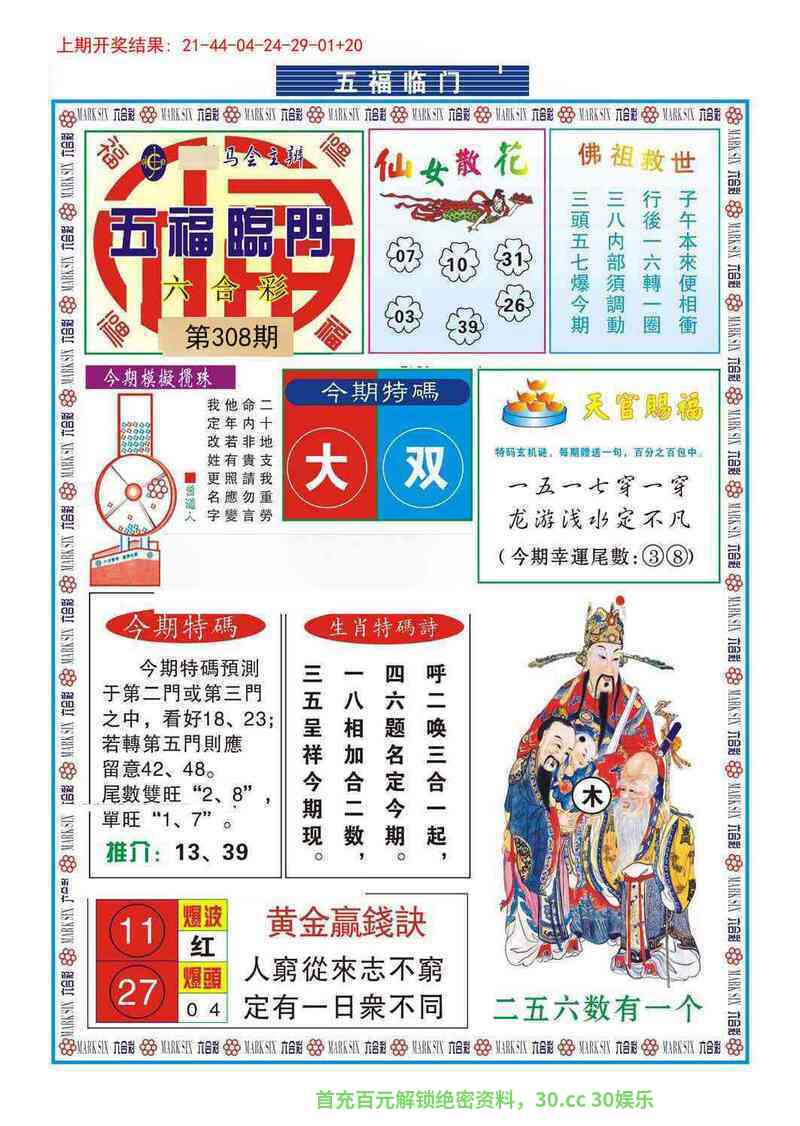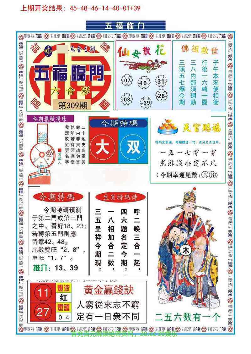 312期:黄大仙心水/简单好下注/台湾玄机诗/港台澳七肖/必中人物